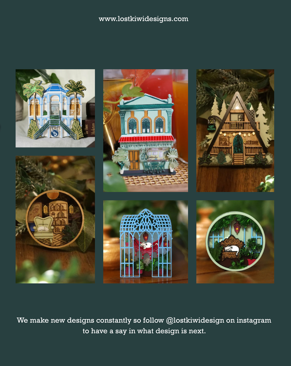 In 2014, I founded Lost Kiwi Designs, beginning this journey with delicate clay trees on Etsy. Since then, we’ve blossomed into a brand that crafts mixed-media artworks from acrylic, wood, and resin. Yet, I still find joy in using clay to sculpt and add intricate details to some of my beloved designs.