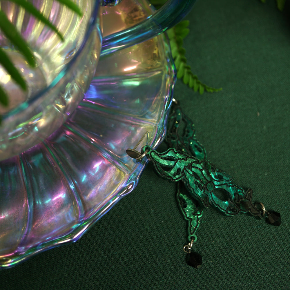 Tangled Kelp in the stunning green acrylic. Featuring a Swarovski jet crystal.